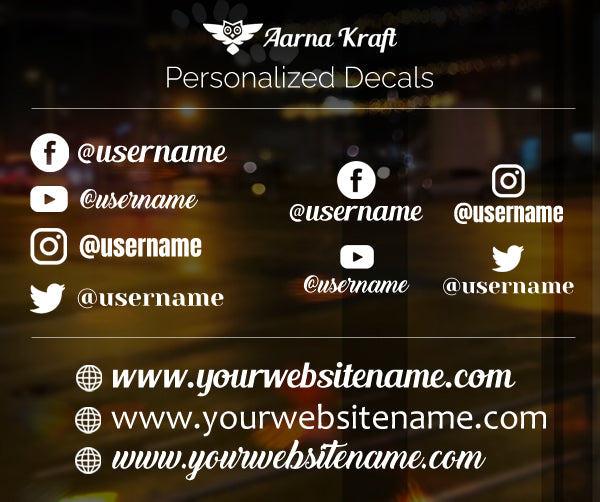 Custom social media decals stickers - customized name username personalized logo business brand vinyl made cars window wall trucks boat vehicles instagram facebook